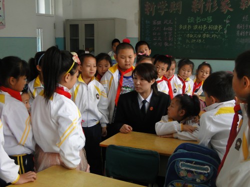 活动开始,该院干警分别通过案例、故事的形式对法律常识、小学生如何进行自我保护、如何预防犯罪、如何应对突发情况等问题进行了多角度的讲解和分析。同时,也借此机会向小朋友们讲授了控制情绪的方法,告诫他们要远离网吧、游戏厅等不适宜青少年出入的场所,做好自身安全的保护。在接下来的互动交流中,宁安法院干警以故事、提问、歌曲等生动有趣的形式向小朋友们介绍了道路交通安全、消费者权益保护、环境保护等方面的法律常识和注意事项,还通过一则小故事向他们强调了“诚信”这一优秀品质的重要性。在整个活动中,该院干警的认真耐心和风趣幽默都受到了实验小学小朋友们的喜爱,他们踊跃提问,课堂气氛十分活跃。