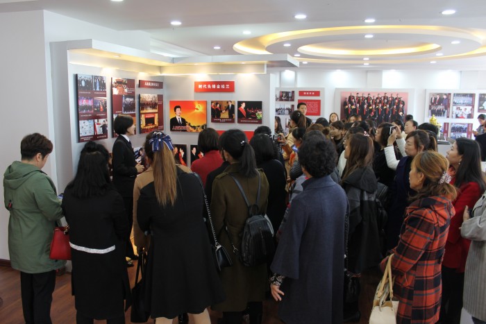 院史馆内,在“时代先锋”金桂兰板块前,讲解员向大家介绍了金桂兰法官的生平事迹。看着一张张照片,大家对金桂兰法官有了初步的了解。