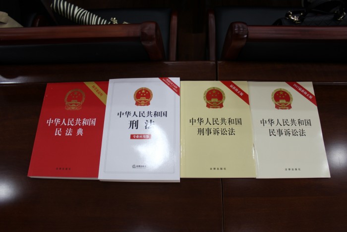 在培训授课前,宁安法院为每一位参加培训的陪审员发放了《民法典》《民事诉讼法》《刑法》《刑事诉讼法》四本法律书籍,供陪审员学习使用。