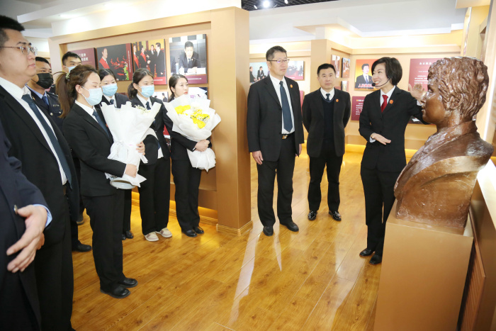 在讲解员的带领下,佟波副院长一行参观了金桂兰纪念馆、生前工作过的办公室、瞻仰了金桂兰雕像,讲解员从金桂兰同志的生平事迹、审判工作经历、获得的荣誉以及她留下的珍贵精神等多个方面为干警进行了生动讲解。馆内珍藏的照片、资料和奖杯让大家切身感受到金桂兰法官为人民服务、乐于奉献的宝贵情怀。