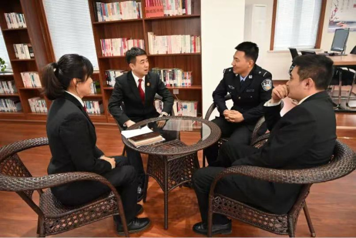 庭长依托“青蓝工程”指导年轻干警,通过案例研讨、庭审示范等提升业务能力。
