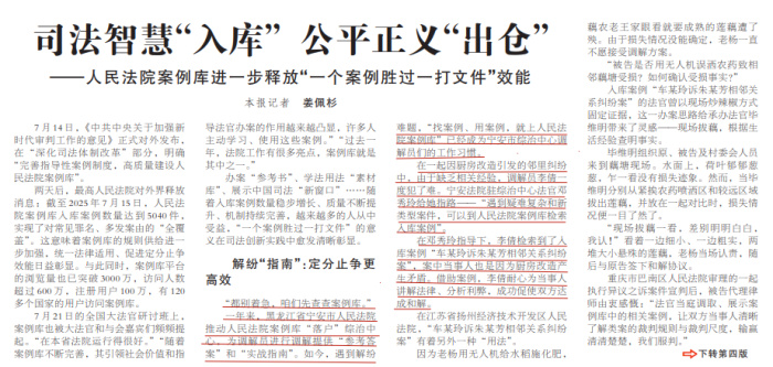 案例只有通过使用才能发挥价值。有统计数据显示,2025年上半年,全国法院在审理案件过程中参考入库案例作出裁判案件在20万件以上,较之2024年全年参考入库案例作出裁判案件18万件的情况有了明显增长。