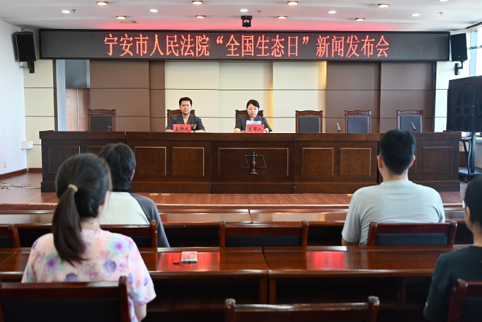 今年是绿水青山就是金山银山理念提出20周年,也是全国生态日设立的第3年。设立全国生态日是践行习近平总书记8月15日在浙江湖州安吉考察时首次提出的“绿水青山就是金山银山”这一科学论断的重要举措,这个日子标志着中国生态文明建设的一个重要思想起点,体现了国家对生态文明建设的高度重视和长远谋划,更是对司法机关服务生态文明建设的时代召唤。宁安市人民法院召开全国生态日新闻发布会,用法治力量守护绿水青山。发布会由政治部副主任伊磊主持,民一庭庭长邓妍发布工作成果。