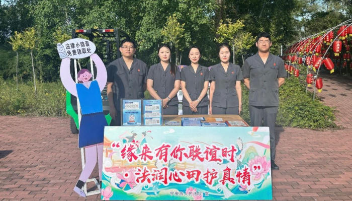 活动中,宁安法院干警邀请全国人大代表、宁安市玄武湖大米专业合作社销售经理陈雨佳共同开展普法工作,以现场发放宣传折页、面对面讲解、互动答疑等形式开展精准普法,将法律条文转化为贴近未婚群体需求的“实用指南”,让司法服务与浪漫氛围同频共振。