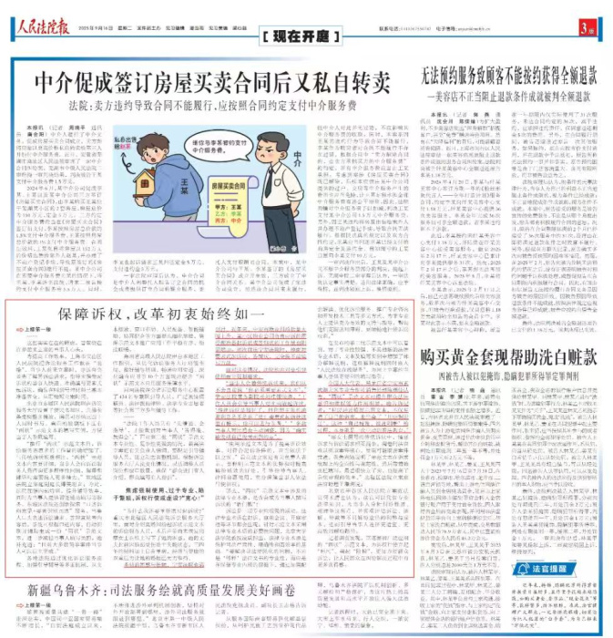 2025年9月16日,《人民法院报》头版刊发了《保障诉权,改革初衷始终如一》,文章中提到宁安市人民法院在“两状”示范文本推广应用过程中的经验做法。