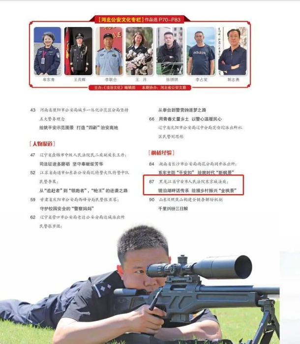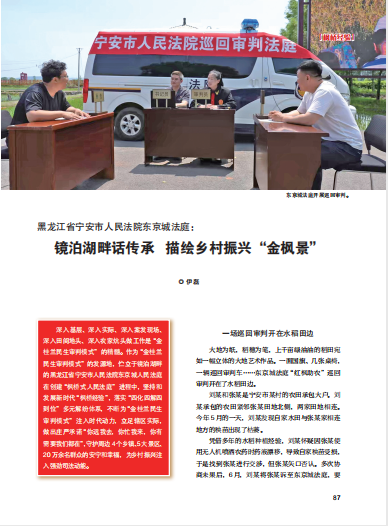 近日,《法治文化》刊发了《黑龙江省宁安市人民法院东京城法庭:镜泊湖畔话传承,绘描乡村振兴“金枫景”》,对宁安市人民法院东京城人民法庭践行“枫桥经验”、传承“金桂兰民生审判模式”、创建“枫桥式人民法庭”的典型案例进行报道。