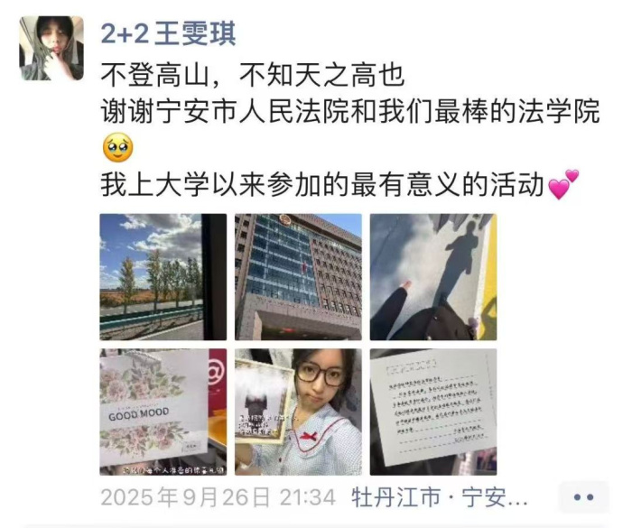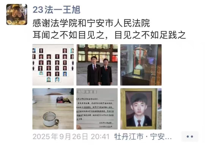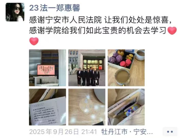 在青春的赛道上,有这样一群法学学子,他们怀揣着对法律的热爱与憧憬,踏上了一段与宁安市人民法院近距离接触的奇妙之旅。近日,牡丹江师范学院法学院与宁安市人民法院携手开展了一系列丰富多彩的院校合作活动,如同一盏明灯,照亮了学子们的法治前行路。活动结束后,同学们的内心久久不能平静,他们纷纷抒发着自己的感慨与收获,快来看看学子们活动后的感受吧!