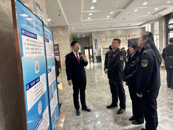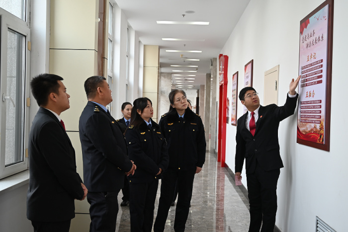 活动伊始,在法院工作人员的引导下,王启龙局长一行首先驻足“走在前列”工作成果展示区。展板上一张张详实的图片、一组组鲜明的数据、一个个生动的案例,系统呈现了宁安法院践行黑龙江省高级人民法院“一要二统三抓实”工作思路,以“三争”晋先为抓手,在优化营商环境、创建枫桥法庭、服务基层治理、践行司法为民等领域的硬举措与实成效。从跨域立案的高效便捷到多元解纷的源头化解,从智慧法院的技术赋能到队伍建设的成果彰显,参观者们不时驻足交流,对法院围绕中心大局、服务发展民生的担当作为有了更深刻的认识。