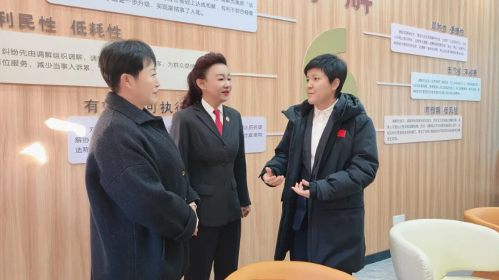 尤为引人注目的是“雨佳调解室”,全国人大代表、宁安法院特邀调解员陈雨佳正在这里为一起民间借贷纠纷当事人开展调解,调研组委员们现场见证了整个过程。纠纷双方因借款逾期返还产生争执,僵持不下之际,陈雨佳依托人民法院案例库,快速检索到多起类案裁判要旨,结合本地相似纠纷调解经验,用通俗易懂的语言向双方释法明理,既阐明借款返还的法律义务,也兼顾双方实际困难提出合理解决方案。经过耐心疏导,双方最终达成一致调解意见,当场签订调解协议,这起纠纷得到圆满化解。委员们对陈雨佳运用类案指引、情理法融合的调解方式给予充分肯定,认为这种“看得见、摸得着”的解纷实践,生动展现了新时代“枫桥经验”的实践成效。