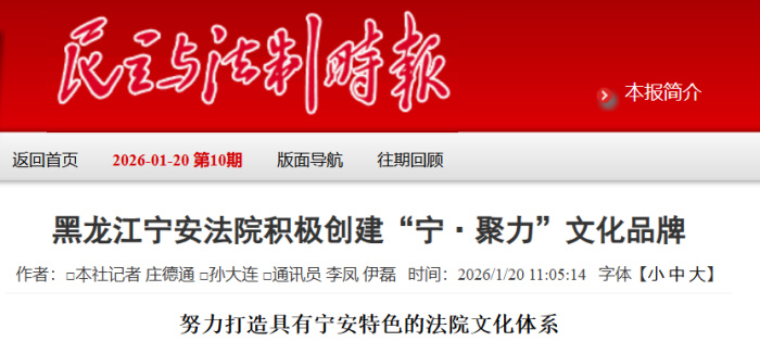 2026年1月20日,民主与法制时报发布《黑龙江宁安法院积极创建“宁·聚力”文化品牌》。
