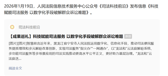 【媒体聚焦】《司法科技前沿》发布宁安市人民法院《科技赋能司法服务 以数字化手段破解群众诉讼难题》