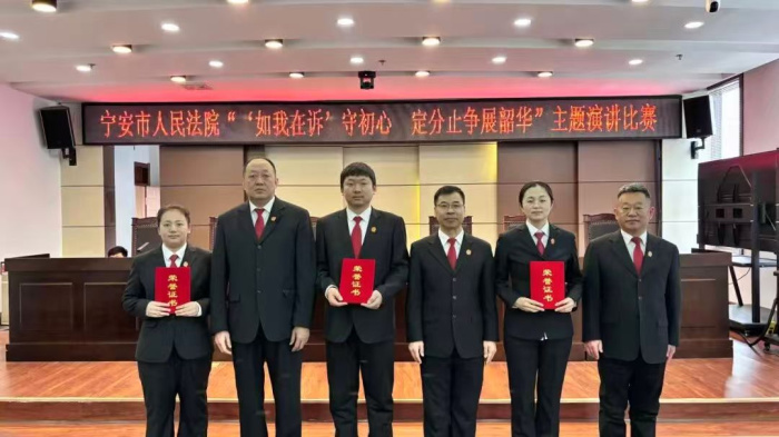 此次主题演讲比赛是我院贯彻落实最高人民法院关于加强青年干警队伍建设、推动“如我在诉”理念落地见效的具体举措,不仅为青年干警搭建了交流学习、展示风采的平台,更以赛促学、以赛促干,进一步引导全院青年干警把“为大局服务、为人民司法”的要求转化为自觉行动。下一步,宁安法院将持续深化“如我在诉”司法理念实践,聚焦锻造新时代法院铁军,加强青年干警培养锻炼,引导年轻干警在司法实践中锤炼本领、增长才干,切实把党建引领优势转化为治理效能,以更高水平的司法服务为“十五五”良好开局保驾护航,努力让人民群众在每一个司法案件中感受到公平正义。
